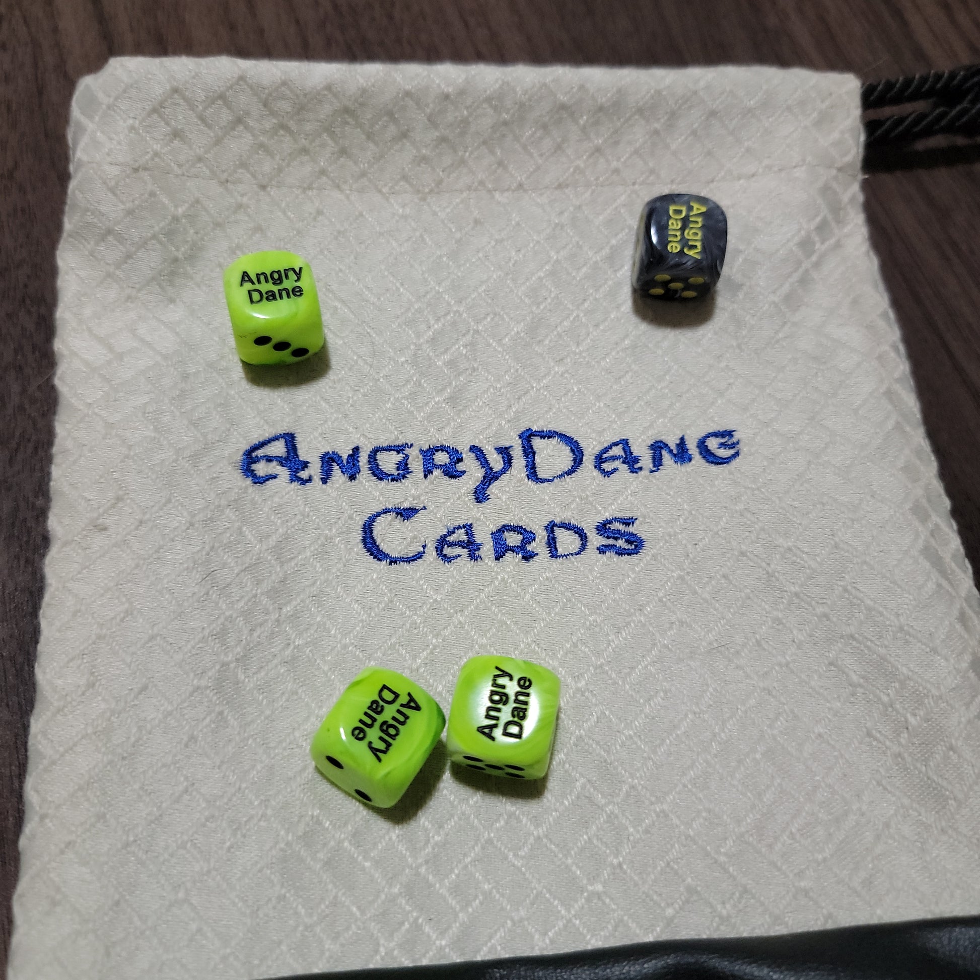 One of the rarest items in existence. This custom bag and dice were a special release promotional item from AngryDane cards, circa 2020.