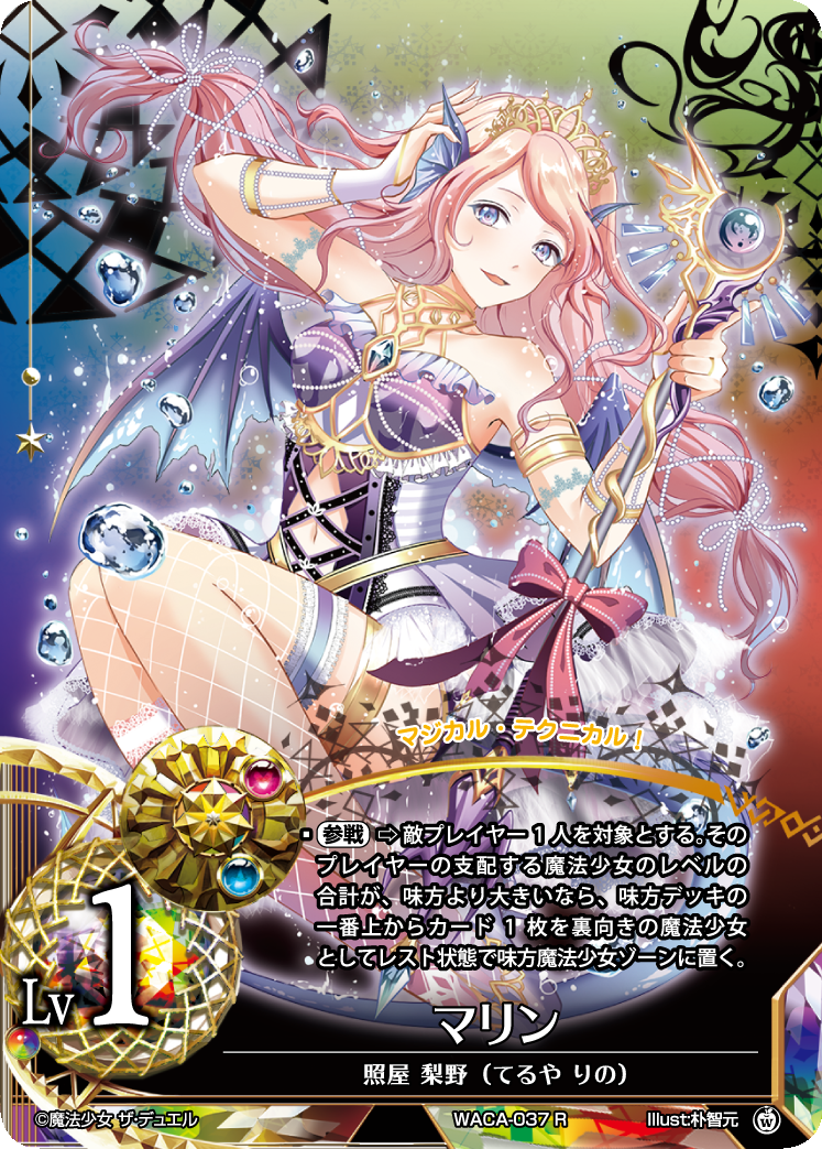<Participation> ⇒ Target one enemy player. If the total level of the magical girl controlled by that player is greater than that of an ally, put one card from the top of the ally deck in the rest state as a face-down magical girl in the ally magical girl zone.